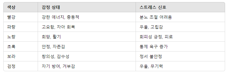 - ⚫ 검정: 차단, 분노, 강한 자기 방어